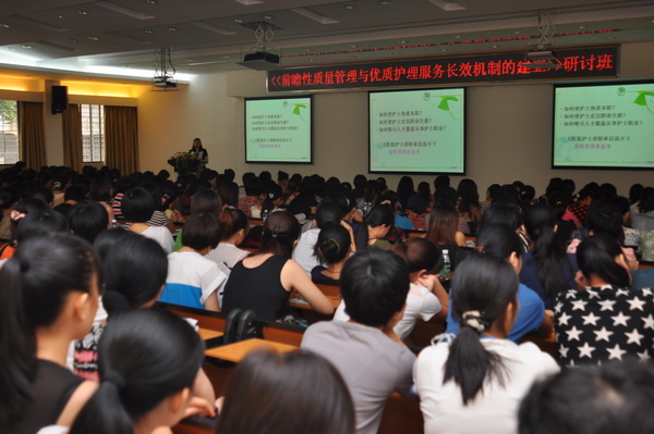 张容科长主要解读三级综合医院评审标准护理部分的实施细则,学习了卫生部关于实施护理岗位管理文件精神,开展护士岗位管理的目的及必要性,了解了岗位管理是公立医院改革完善人事和收入分配制度的任务要求。护理部王华珍部长带领大家进行了“美国一日游”,从美国的护理管理理念、医院建筑设计、公平合理的薪酬分配机制、护理教育管理、高科技信息化管理、完善的医疗保障体系等方面讲解了她在美国学习的所见所闻。本次研讨针对护士管床与责任护理、护士服务礼仪、成本控制与经营分析、优质护理服务示范先进病区胃肠外科创优工作经验交流等方面的内容,展开热烈的讨论。