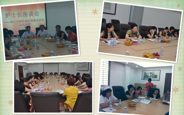 为了进一步巩固及推进优质护理服务示范工程活动的深入开展,9月24、25日下午,在吴斌副院长的主持下,由护理部负责组织召开了以“深入开展优质护理服务的亮点及困惑”为主题的护士长座谈会。本次座谈会还特邀请了党群部部长李黎、工会常务副主席文若兰、人力资源部部长尹艳兰。