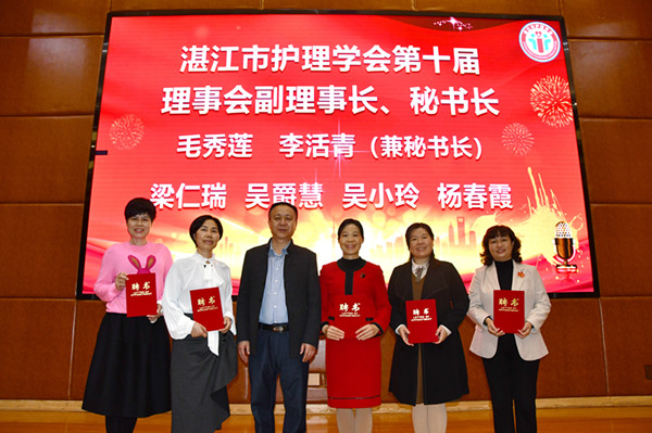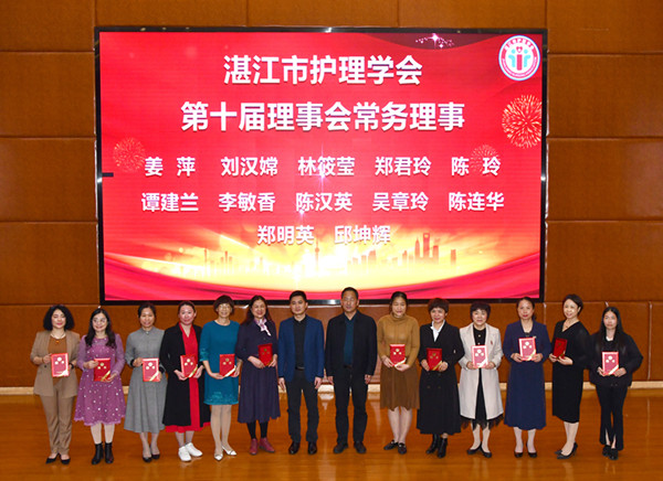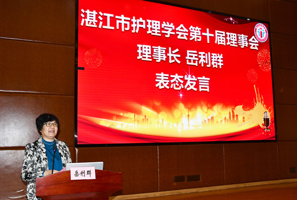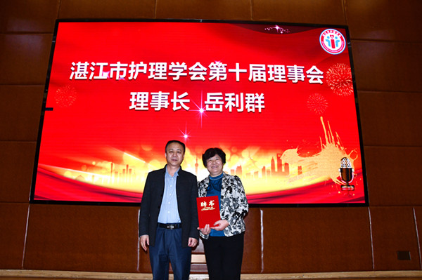 经选举,岳利群当选为湛江市护理学会第十届理事会理事长,毛秀莲、李活青(兼秘书长)、梁仁瑞、吴爵慧、吴小玲、杨春霞当选为副理事长,姜萍、刘汉嫦、林筱莹、郑君玲、陈玲、谭建兰、李敏香、陈汉英、吴章玲、陈连华、郑明英、邱坤辉当选为常务理事,李亚轩当选为监事会监事长,沙立民、李瑞萍、冯桂芳聘为第十届理事会顾问。湛江市卫生健康局党组成员、三级调研员彭启雄分别为她们颁发聘书。