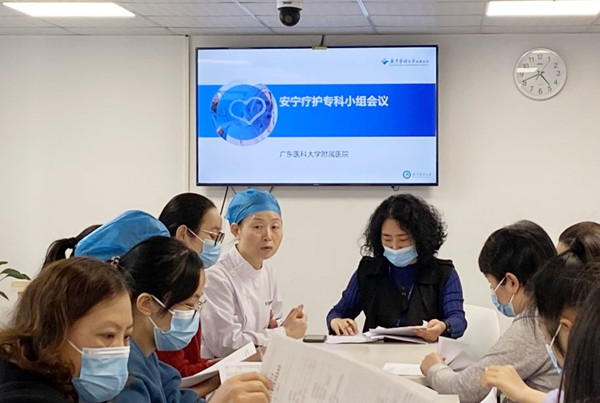会上,护理部姜萍副部长指出为贯彻落实《“健康中国2030”规划纲要》《广东省卫生健康事业发展“十四五”规划》等文件精神,依据《广东医科大学附属医院护理服务工作“十四五”规划》,2023年建立安宁疗护试点病房;我院也在拟定建设实施方案,前期安宁疗护工作需各试点科室积极配合,精准落实,全力推动我院的安宁疗护工作。