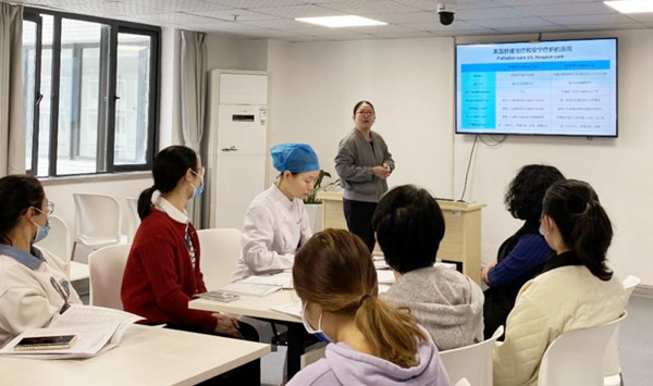宁养院护士长孙碧兰介绍了安宁疗护在国内外的发展概况、如何进行终末期患者预生存期的评估及干预时机;乳腺食管淋巴瘤专科护士长及陈爽护士进行了案例分享,除了需要做好患者的临终关怀,也需要关注家属的哀伤辅导。