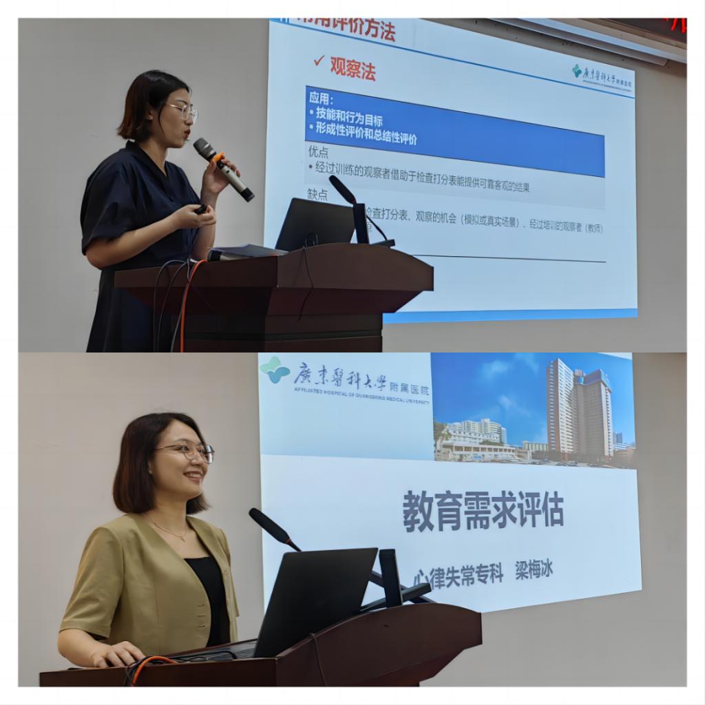 综合片区科护士长莫美珍、教育护士导师王璐护士长授课