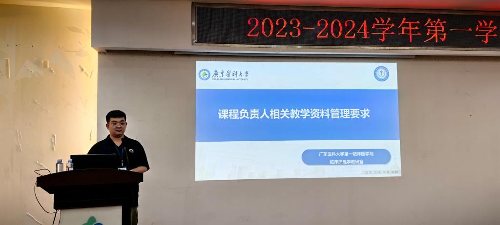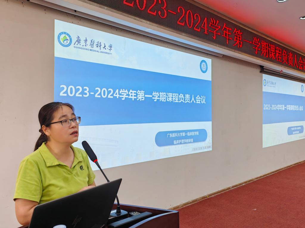 临床护理学教研室翟桂政以《课程教学管理资料要求》为题进行汇报,从课程负责人职责、基本教学资料及教学考核资料等方面向课程负责人提出规范化要求,他指出课程负责人应全面负责课程建设工作和本课程的教学组织工作,组织教师团队进行教学内容优化,调整教学形式,拓展教学资源,加强教学资料的书写及教学资料归档的管理工作。