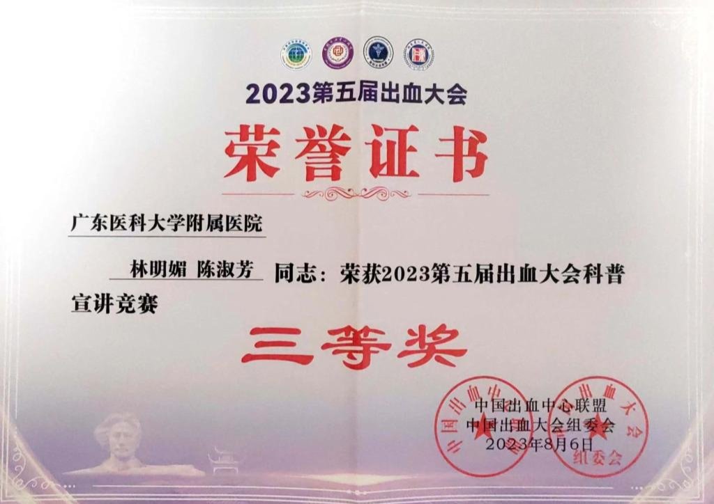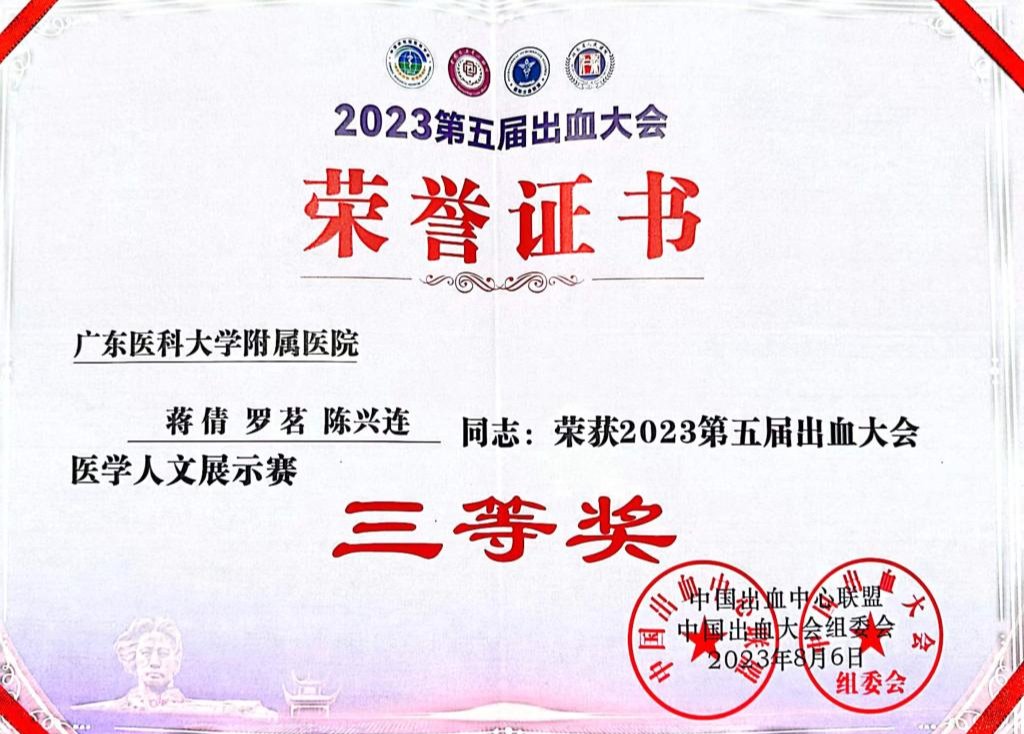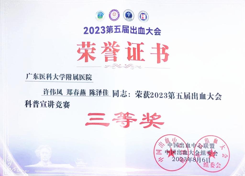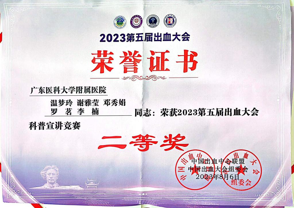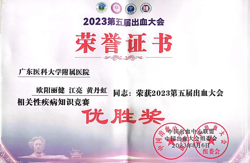 出血相关性疾病知识竞赛优胜奖