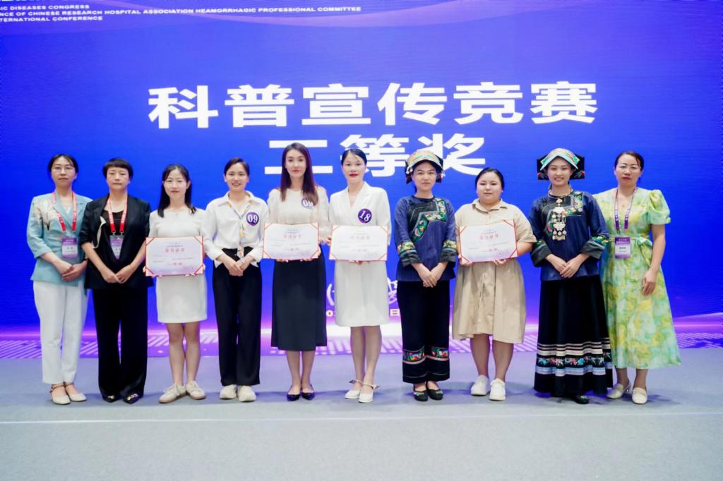 为了推动出血疾病领域的发展和交流,第五届全国出血大会于8月3—6日在湖南长沙隆重举行。我院作为“中国出血中心联盟理事单位”,会前护理部按照“优中选优”的思路遴选出8名代表参加了大会的科普宣讲、SBAR沟通、医学人文展示、出血相关性疾病知识等竞赛,最终荣获科普宣讲竞赛二等奖、三等奖;SBAR沟通竞赛三等奖;医学人文展示三等奖;出血相关性疾病知识竞赛优胜奖。
