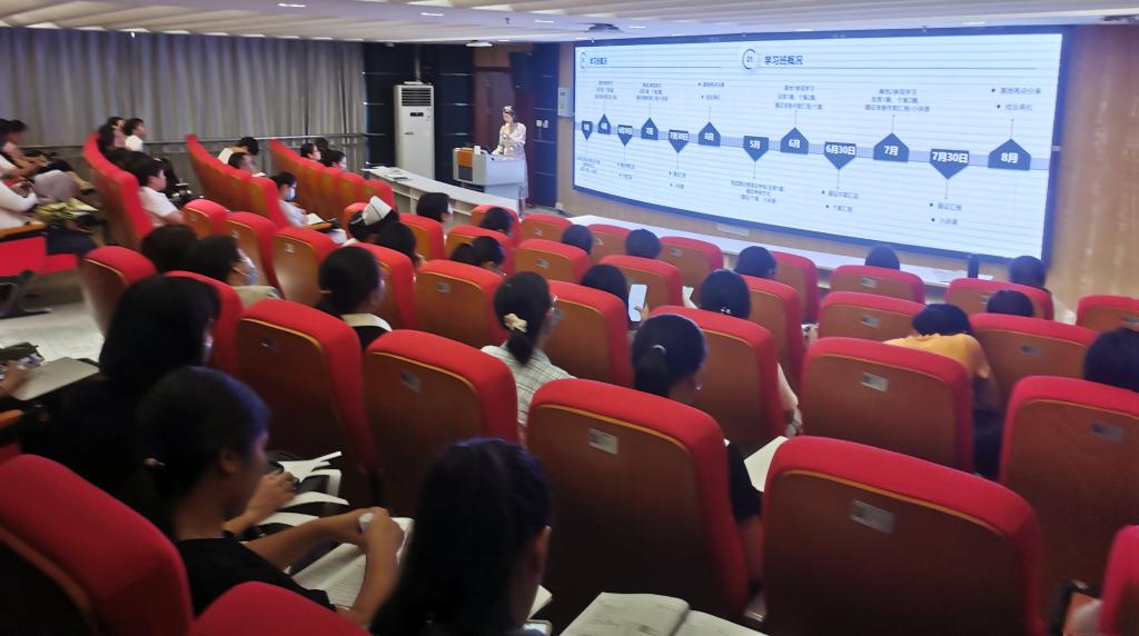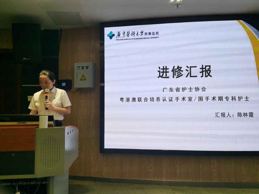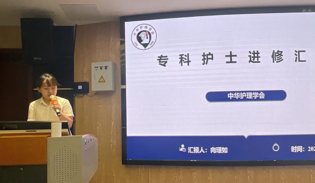 林康兴、陈林霞、向瑾如、邓松泽、廖子慧五位参加专科护士培训归来的护士,分享了专科护士培训学习收获与感悟,找出了我院与学习培训基地在专科建设方面的优势、差距及发展方向,如专科护士任职、先进的专科技术及护理理念、统一规范的管理方式、细致入微的人文关怀护理和优质的教学理念和团队文化建设方面等。
