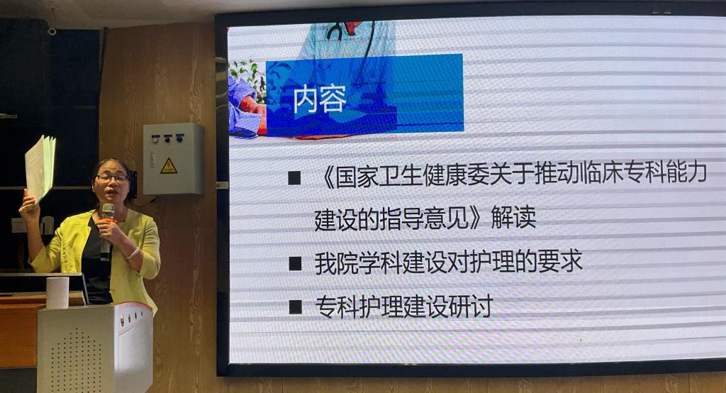 卜淑娟副部长解读了《国家卫生健康委关于推进临床专科能力建设的指导意见》,传达了我院学科建设对护理的要求及下一步专科护理工作计划;组织在场的专科护士就护理学科建设进行讨论,大家聚焦的问题在专科护士培养应加大力度、各专科应该联手协同发展、在依托医疗的基础上,促进护理亚专科的建设等。