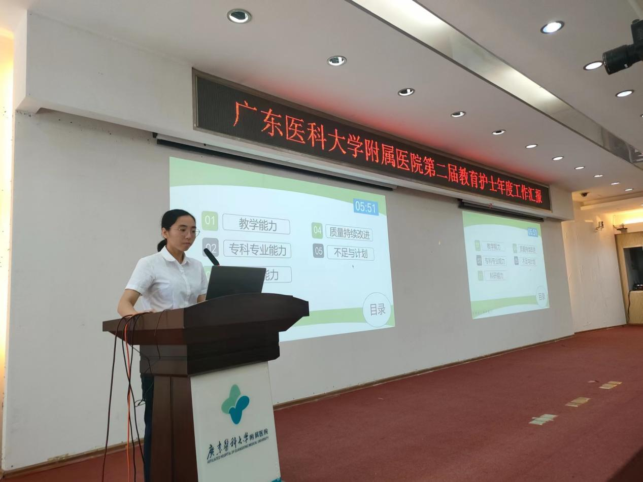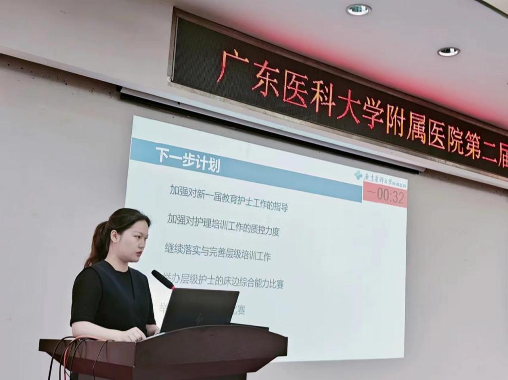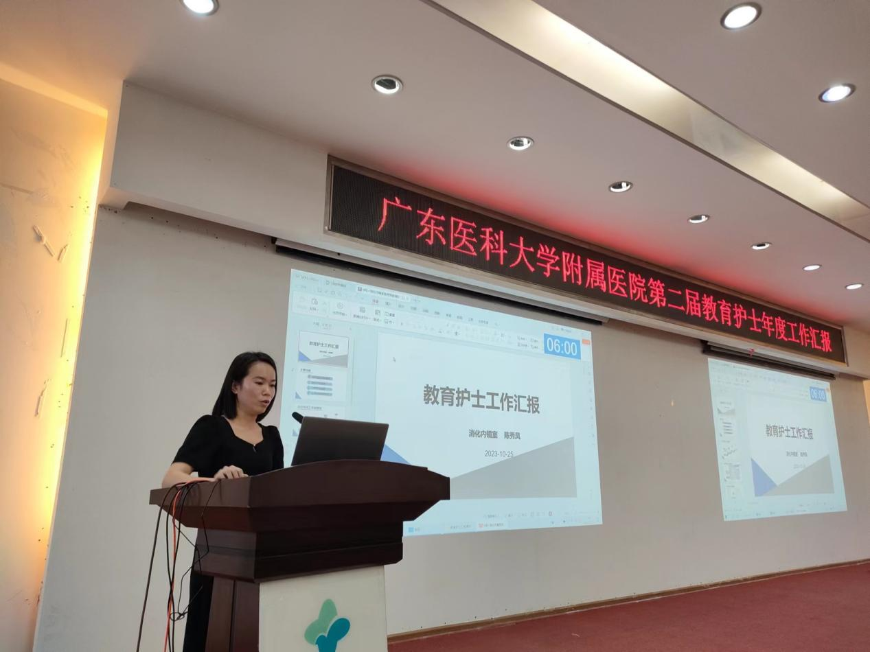 为落实教育护士岗位职责管理,健全教育护士培训体系,2023年10月25日,在学术报告厅举办了第二届教育护士年度工作汇报会。护理部副部长(主持工作)梁霞主持,医院党委委员、主管护理副院长吴志远出席,护理部副部长姜萍、大内科科护士长刘艳华、大外科科护士长梁小玲、综合片区科护士长莫美珍、门诊部科护士长梁冬红、急危重症科科护士长陈彩凤、广东省教育护士、教育护士导师及宁养院护士长孙碧兰、教育护士导师赖春晓担任评委。教育护士、储备教育护士及护士长共100余人参加。