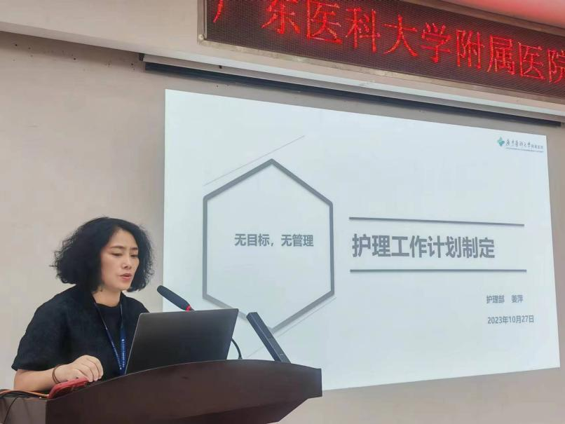 卜淑娟副部长以我院2023年第三季度不良事件分析为切入点,结合不良事件典型案例,从“正确识别患者身份、确保用药与用血安全、强化围手术期安全管理”等十方面深入解读了《中国医院协会患者安全目标》《2023年国家医疗质量安全改进目标》和《患者安全专项行动方案(2023-2025年)》;随后列举了与护理工作相关的法律法规,强调了日常护理工作中容易触犯法律法规的环节进行了详细讲解。