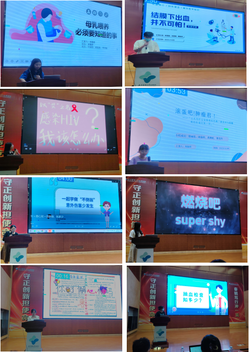 参加本次比赛分为图文科普组和视频科普组,每个类目10组科普作品。20组选手精心准备,通过PPT宣讲结合视频、设计海报等多元化的形式,围绕群众普遍关心的慢病防治、健康生活等主题,有的深入浅出,有的幽默风趣,有的富有启发,有的富有美感,激励着在场同学不断创新向前!