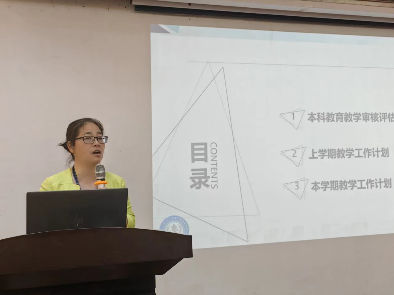 临床护理教研室卜淑娟副主任对2023-2024学年第一学期工作从总体情况、本科教育教学评估、师资团队建设、教学质控等四个方面进行回顾,分析了过去一个学期护理教师团队在本科教育教学评估中的付出与努力,也从教学质量及教学改革模式上提出了现存问题及解决策略。