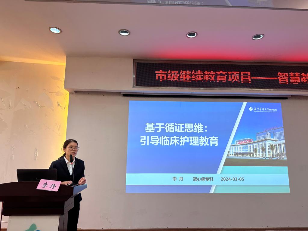 冠心病专科病区教育护士李丹以“基于循证思维:引导临床护理教育”为题,介绍了其如何在临床教学内容中融入循证要点,如何在临床专科教学的基础中评价科学教学内容,将传统填鸭式临床教学转变为循证护理教育模式,推动护理人才能力培养,激励个人自主学习,践行终身学习目标。