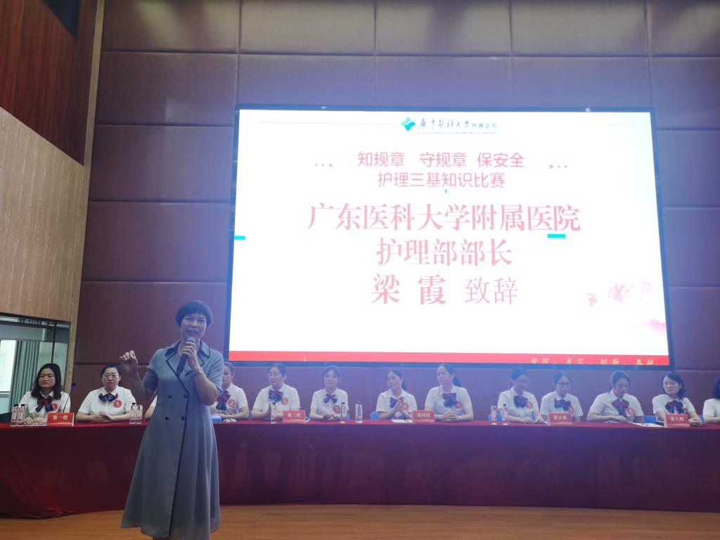 在活动开幕致辞中,护理部部长梁霞向所有嘉宾和选手表达了热烈的欢迎。她强调,护理工作是医疗体系中至关重要的一环,它直接关系到患者的健康与安全。在这个以人为本、质量为先的时代,我们必须深刻认识到,规章制度是保障患者安全、提升护理质量的基石。因此,我们倡导“知规章,守规章,保安全”的理念,希望通过此次竞赛活动,进一步增强护理人员的制度意识,提高遵循规章制度的自觉性与主动性,也预祝各位选手赛出风格,赛出水平,收获成长,取得好成绩!