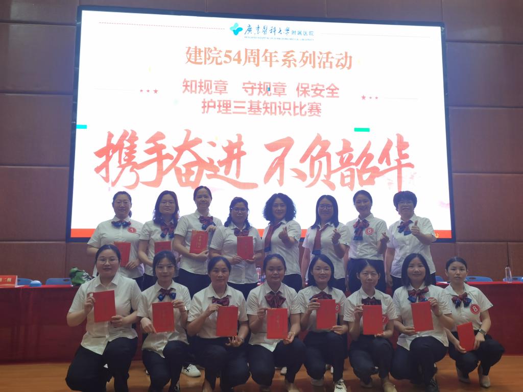 随着参赛者们喜悦地合影留念,本次护理三基知识比赛落下帷幕,这不仅是一场知识的角逐,更是对护理人员职业素养的深度检阅,它象征着我院对护理安全重要性的高度认识与不懈追求。“知规则,守规章,保安全”不仅是比赛的口号,更是每一位白衣天使日常工作的真实写照。让我们共同期待,在这样高标准、严要求的专业磨砺下,护理队伍将更加专业、更加安全,为患者健康护航,为医疗质量的提升贡献力量。