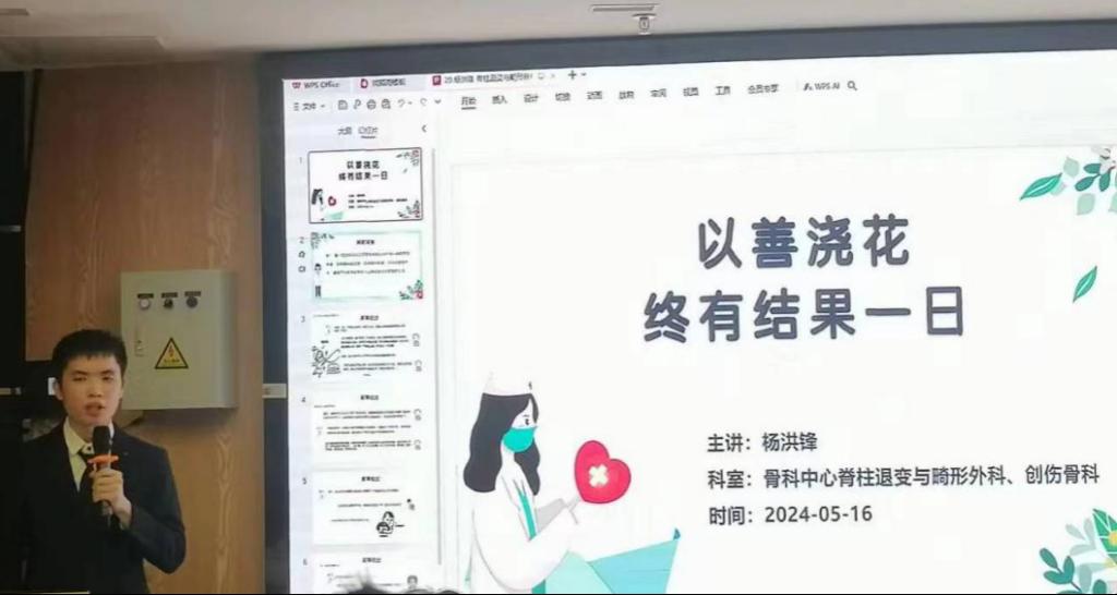 经过前期规培生们积极投稿,专家评审,最终从中遴选出了41份作品进入决赛。来自不同科室的选手们以PPT为主,运用音乐、情景再现等形式,围绕护患沟通、安宁疗护、个人叙事等主题视角,图文并茂地向评委及观众们生动形象地展示一个个感人的故事,换来阵阵掌声。