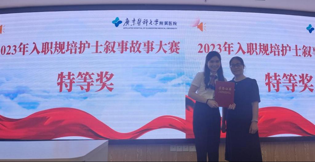 为了更好构建我院叙事医学生态,提升我院护理人员的叙事能力。5月16日,广东医科大学附属医院2023年入职规培护士叙事故事分享比赛在全科医师楼多功能报告厅顺利举办,由护理部副部长卜淑娟、护理部副部长姜萍老师、第一期叙事医学师资李春霞老师、宁养院护士长孙碧兰、叙事医学师资成员吴康倩出席担任评委,在主持人胡译心的精简介绍下,故事分享比赛正式开始。