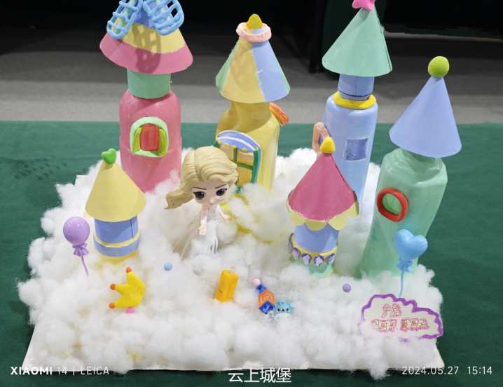 材料:废弃饮料瓶、生日蛋糕插件、黏土及棉花等