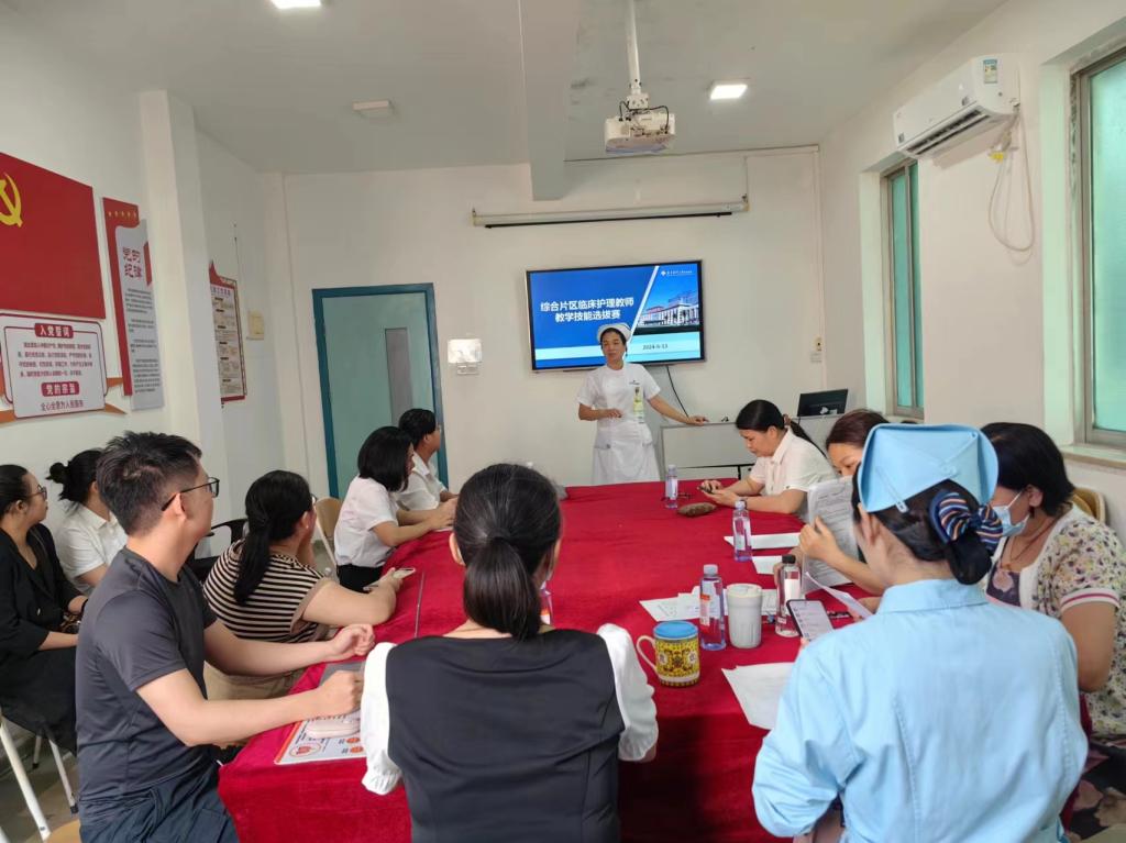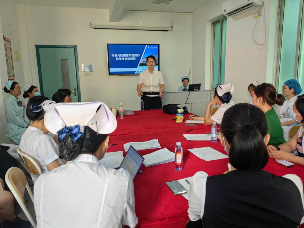 为了提升临床护理带教教师的专业素养,优化师资队伍结构,完善临床护理教学管理体系,全面提升带教老师的教学能力,建设一支具有高尚职业道德、卓越专业技能、并能适应本院护理教学需求的高素质临床护理带教团队,综合片区于2024年6月13日下午组织了临床护理教师教学技能选拔赛。
