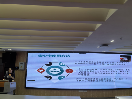 首先由大内科刘艳华护长在多功能报告厅进行为大家讲解了安心卡的使用方法、具体操作过程及配合要点。