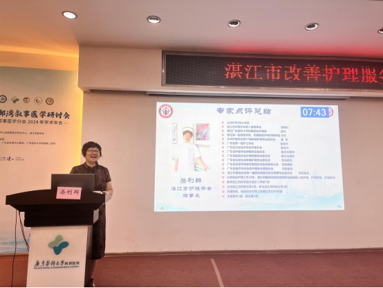 湛江市护理学会理事长岳利群对参赛选手的卓越表现给予了高度评价与认可。她指出,这些典型案例不仅体现了护理人员的创新思维和实践能力,更为推动全市护理工作的高质量发展提供了宝贵经验。她凭借敏锐的洞察力,从典型案例的亮点、特色、成果与产出等多个维度进行了精准的点评,并为护理持续改进工作提出几点富有建设性的建议:第一,所有应用的案例均需要形成可供参考的标准,有标准才能有效落实;第二,扩大成效与成果的范围,不应仅限于科研,还应囊括医院效益、患者感受、医务人员感受、满意度等,第三:案例改进方法及运作路径是关键,是整个案例的精华,需要着重点缀及阐述;最后,岳利群理事长选用一份优秀案例进行一一分析解读,加深了大家对典型案例的更深层次的理解,为我市护理工作的持续改进指明了方向。