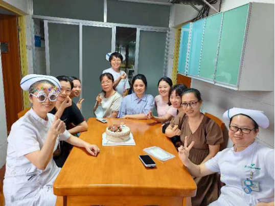 活动最后为护士长举办生日,大家纷纷献上生日祝福,分享生日蛋糕,在护士长的辛勤付出及领导下,我们才能在护理的道路上,不断学习,不断提高,为患者提供更优质的护理。