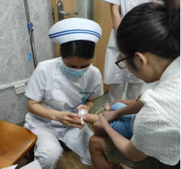 这天晚上,急诊科输液区有一位三个月的小宝,他因为高烧不退腹泻呕吐被紧急送来。小宝因年纪稍小、血管循环较差、静脉不明显,给穿刺带来了不小的难度。负责的护士小凤姐姐尝试了几次,但都没有成功,小宝的四肢上已经出现了几个小小的针眼,每一次尝试都让他感到疼痛,泪水在他的小脸上滑落。小宝的家长看到更是满眼的心疼,便有了些许对护士的指责。正为难之际,梁小玲护士长在夜查房时注意到了这一幕,她轻轻地走到小宝的身边边,轻声安慰他:“小宝宝,别怕,阿姨来帮你看看。阿姨想办法把坏虫虫抓出来好不好啊”她的声音温柔而坚定,小宝虽小,也许是感受到了这个天使一样的阿姨像春天拂过湖面的声音,渐渐地在妈妈的安抚下安静下来,小宝的爸爸妈妈也在梁小玲护士长的安慰下,情绪得到了缓解。