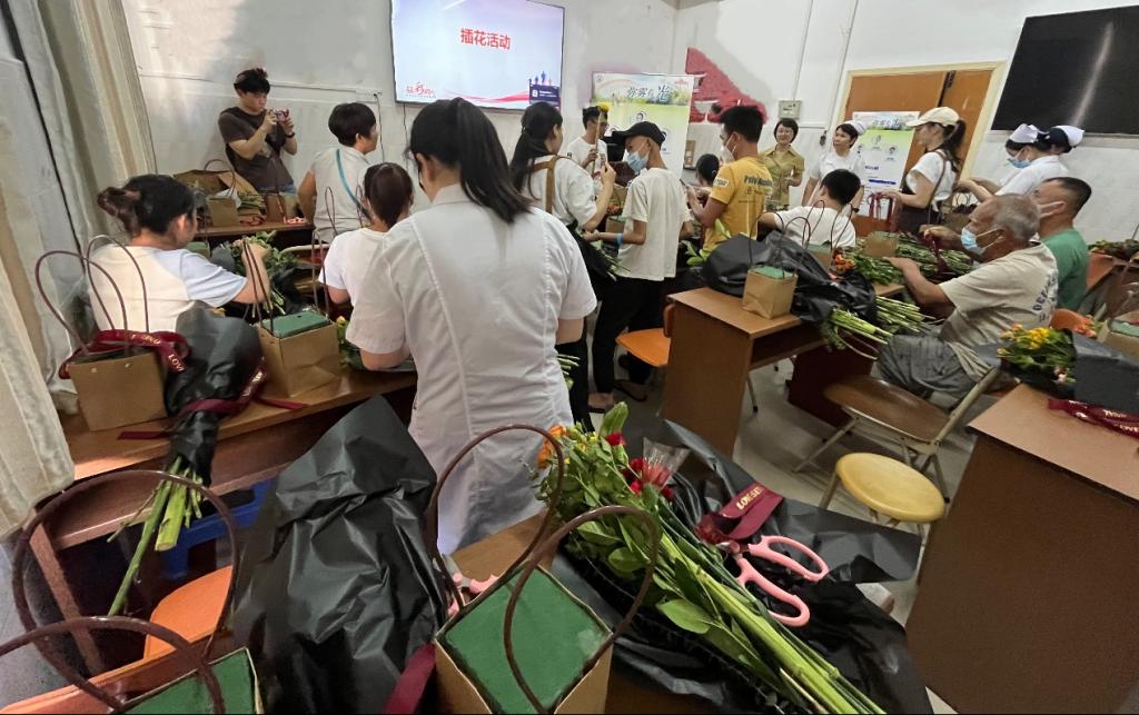 在老师的指导下,新同事、患者及家属们纷纷动手尝试,从选择花材、构思造型到细心搭配,每一步都凝聚着大家的心血与情感。过程中,不时传来欢声笑语,大家相互帮助,共同探讨,那份因疾病而暂时沉重的空气,在这一刻被温馨与和谐所取代。两位新同事更是迅速融入了这个大家庭,她们不仅与同事们建立了深厚的友谊,还与患者及家属分享了彼此的故事,感受到了来自这个大家庭的温暖与关怀。