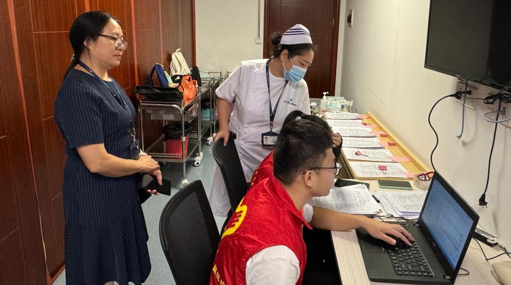 护理部副部长姜萍巡视统分现场