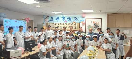随着交班的结束,科室的大屏幕上播放起了我们为医师们精心制作的视频,音乐声中充满了欢乐。我们举办了一个简单而温馨的庆祝仪式,邀请医师们暂时放下繁重的工作,与我们一同分享这份快乐。蛋糕、礼物,还有那雷鸣般的掌声,都是我们对医师们深深的敬意。