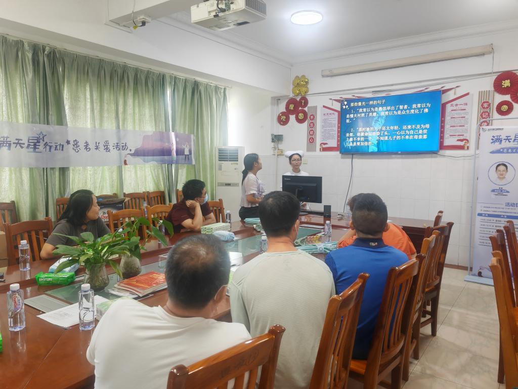 接下来是作品鉴赏环节,跟随史铁生笔下跳跃的文字,感受作者的富有的精神世界。患者及家属们慷慨激昂投入地朗读着散文里感触颇深的句子:“大多数时候的放弃,是你败给了自己,而不是命运。”是啊,我们无法决定生命的长度,但是可以选择生命的高度,唯有自渡,方可挣脱苦难的泥沼。当读到“但是太阳,他每时每刻都是夕阳也都是旭日。当他熄灭着走下山去收尽苍凉残照之际,正是他在另一面燃烧着爬上山巅布散烈烈朝辉之时,”大家倍受鼓舞,进退维谷之日,也正可能是别有洞天之时,希望之光从未熄灭,所以无论何时都不要轻易言弃。 散文字里行间饱含作者对人生透彻、乐观与豁达,对亲情友情的深情讴歌。