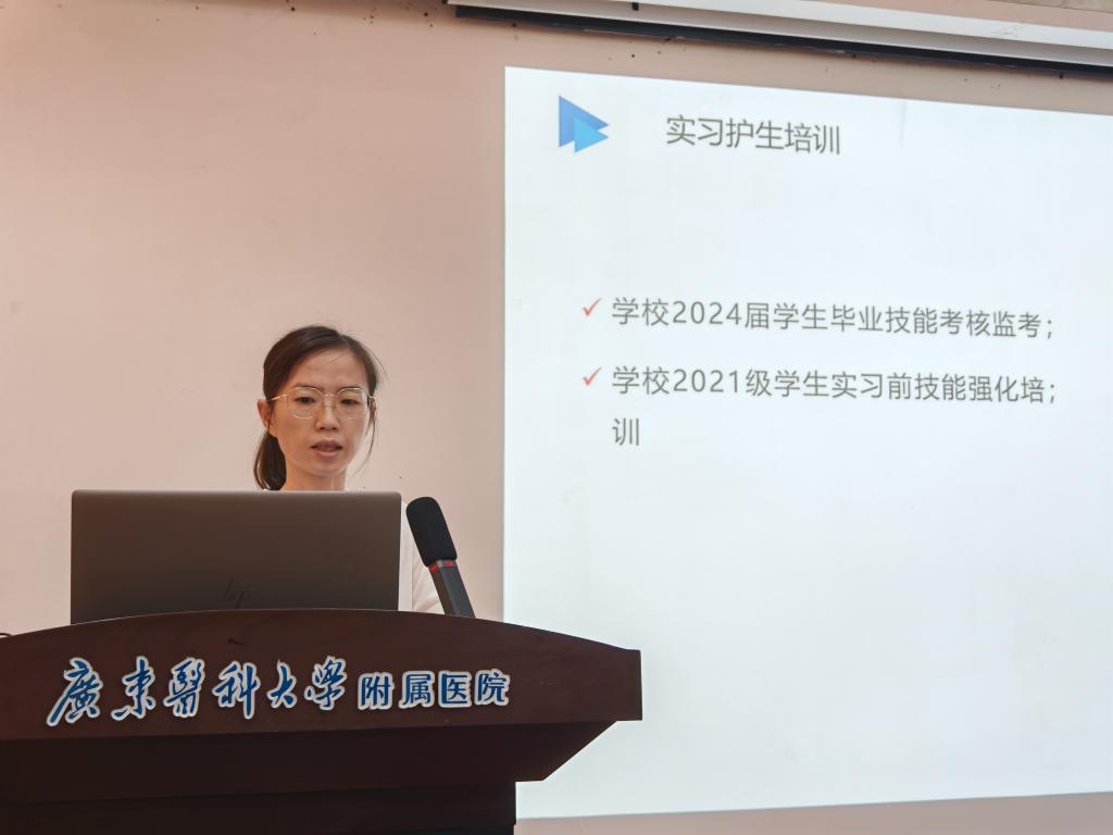 护理部部长梁霞讲话,强调发展护理教育和培养杰出护理人才的重要性,对此提出以下要求:一是教育护士应铭记初心和使命,脚踏实地,始终坚持以“患者为中心”的服务理念,以更优质的服务满足患者需求;二是教育护士职位是一个自我提升的平台,应充分发挥其职能,确保教育护士工作得到妥善执行,以专业和规范的方式,在临床护士的规范化培训中实现教学的专业化和标准化;最后,需要转变视角,实现教学相长,学以致用,发挥教育引领者的角色,做好护理教育的传承、帮助和指导工作,以进一步提升我院护理教育的整体质量。