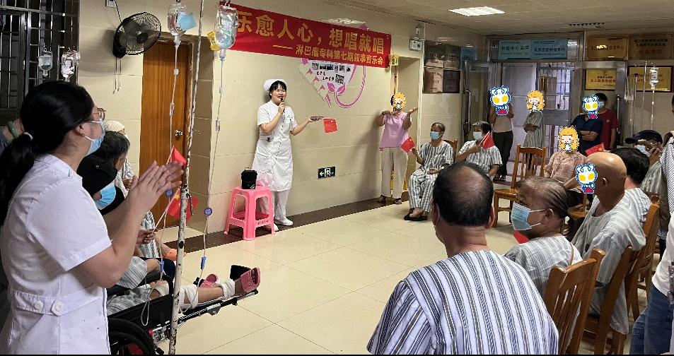 随着主持人叙事师资潘翠英温暖的开场致辞,音乐会拉开序幕。首先登场的是李嘉莉护士,她以一首《红旗飘飘》瞬间点燃了现场的热情。歌声中,红旗飘扬,不仅是对祖国繁荣昌盛的颂歌,更是对生命不屈不挠精神的赞歌。在场的每一个人,无论是医护人员还是病友及家属,都自发地举起手中的小红旗,随着旋律轻轻摇摆,那一刻,医护患间心与心紧紧相连。