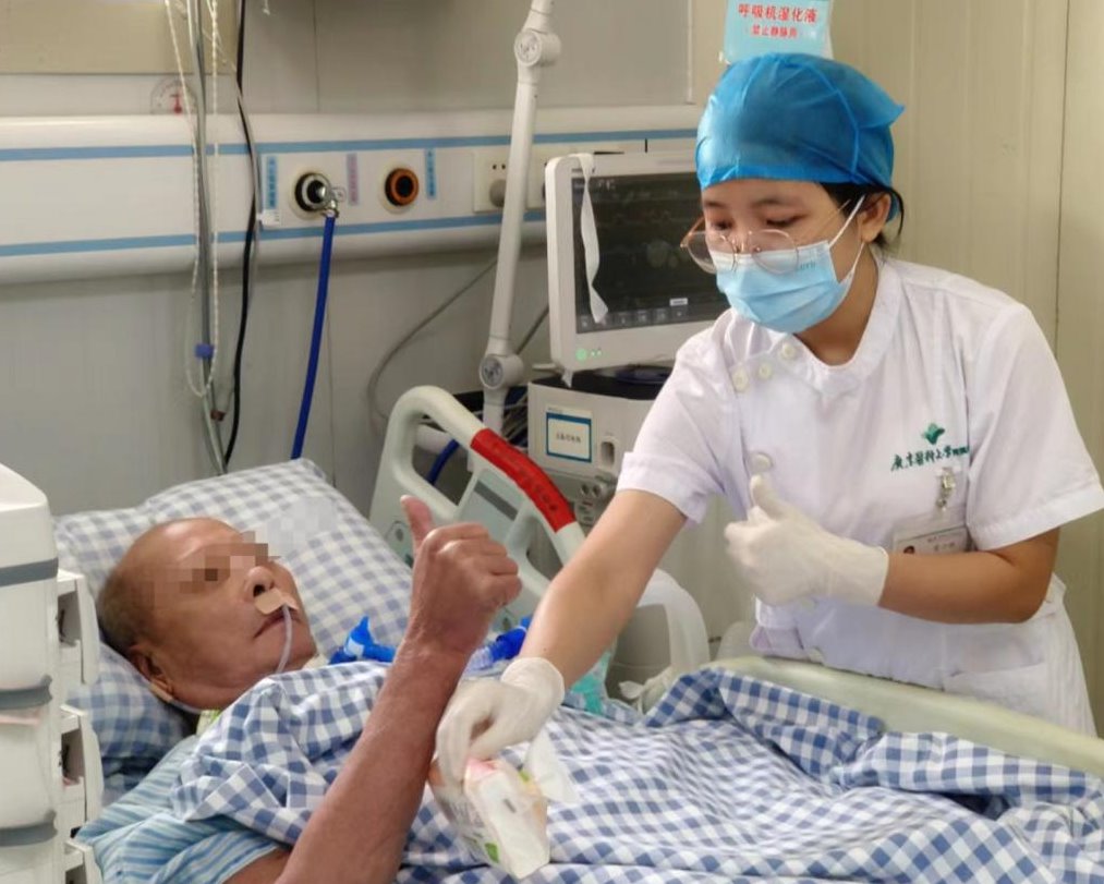 在那个平凡的早上,我如往常一样换上工作服,刚接班,便听到了从病房角落传来的细微声响——那是四床的许爷爷轻轻敲击床栏的声音。尽管他的床位位于病房的最远处,我依然能够清晰地辨认出这个独特的信号。我迅速来到他的床边,只见许爷爷眉头紧锁,面露紧张之情。我轻声询问他是否有痰咳不出,意识清醒但无法言语的许爷爷一边眨眼一边用手指向喉咙,向我传达了他的需求。我立刻回应:“好的,爷爷,我现在就帮您吸痰。”戴上手套,我熟练地为许爷爷吸痰并安慰他放松。在我们的默契配合下,许爷爷的呼吸道很快被清理干净。