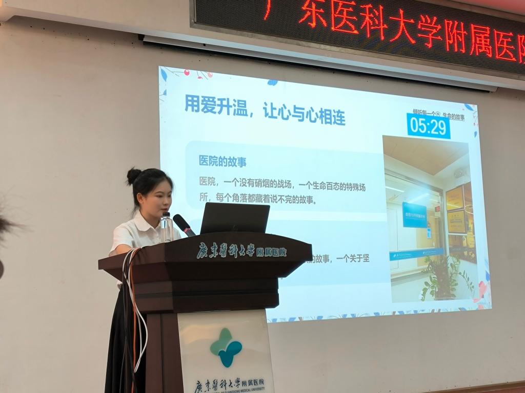 广东医科大学附属医院教学部副部长许定华致辞指出,护理学科作为医疗卫生事业中至关重要的组成部分,肩负着救死扶伤、守护人类生命的崇高使命。叙事护理作为一种创新的护理模式,巧妙地将护理专业技能与深厚的人文关怀融为一体,在患者的心灵与生命之间搭建起一座理解与沟通的坚实桥梁。同时,许部长对参赛同学们的精彩表现寄予了厚望,期待大家能够以饱满的热情、精湛的技巧和深刻的感悟,为本次竞赛添砖加瓦。