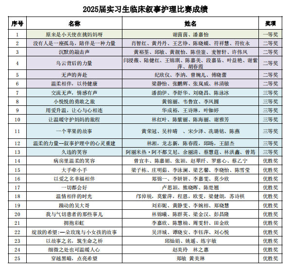 此次“以故事之名,叙生命之桥”叙事护理比赛的成功举办,让广大护理实习生对叙事护理内涵有更深刻的理解,不仅全面提高医学生综合素质和人才培养质量,更让我们的护理服务工作行稳致远,更有温度!(图/文 吴洋城 审/护理部)