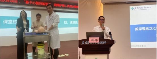 急诊医学中心护士长梁伟从临床护理操作培训中的常见问题出发,挖掘原因,引出心智技能的五个阶段,融合于操作基础原理,逐步将技能培训由动作技能向心智技能转变。心律失常专科护士长梁梅冰讲解了一种新型教学方法“翻转课堂”的实施,利用“学习通”课前发布导学案、微课、课件、操作视频及测验,全面展示了翻转课堂的操作方法。以“口咽通管的使用”为例,选取学员进行现场实操,并进行了操作教学重点及难点评价。
