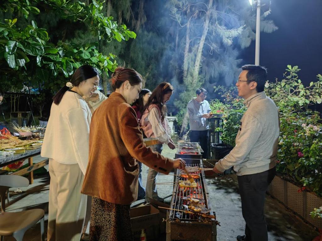 特呈岛,一个碧海蓝天、椰风海韵的地方,是远离城市喧嚣、享受自然之美的理想之地。随着夕阳的温柔余晖洒满海面,脑血管外科的医护团队带着对美好生活的向往,踏上了这片充满欢声笑语的土地。聚会的第一项活动便是烧烤和打鸡瓮,大家分工合作,有的负责生火,还有的则忙着调味,现场热闹非凡,空气中弥漫着诱人的食物香气。在轻松愉快的氛围中,大家暂时忘却了工作的压力,享受着亲手制作美食的乐趣。