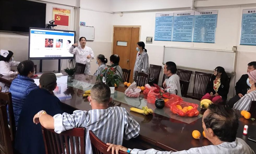 活动在王翠丽护士长的热情开场下拉开序幕,病友们积极参与到呼吸训练的学习中。在慢病管理护士谢小冰和副主任护师李莲的专业指导下,病友们专注地学习呼吸技巧,调整呼吸节奏,目的是为了改善肺功能、缓解病情。这种呼吸训练不仅对病友们的康复大有裨益,而且在互动中程中,也加深了护患之间的情感联系。