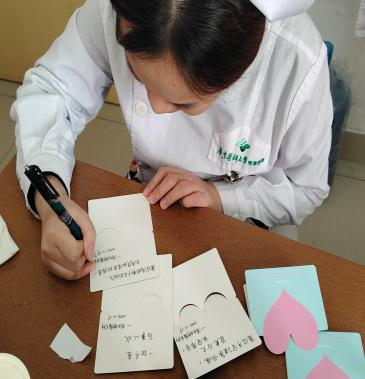 人文小组成员提前为参与的患者写下祝福语,另外附上精美励志卡片及小礼品,增加对患者的亲切感,鼓励大家积极向上,保持对生活的惊喜与热爱。