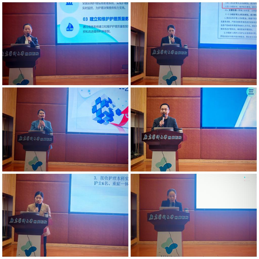 2024年,内科、外科、综合、手术、危重症及门诊各大片区在护理领域取得了显著成果。会议伊始,刘艳华、梁小玲等片区护士长依次上台汇报,重点突出了在科研、人才培养及心血管病护理培训方面的杰出成就。各片区发展目标明确、规划细致:内科片区将着力提升服务质量,同时强化安全管理和人文关怀;外科片区计划攻克手术护理难题,创新服务模式以提升患者体验;综合片区将顺应“差异化发展”趋势,灵活应对多样化需求;手术片区则强化科室管理,确保每一台手术的安全与成功;危重症片区将推行“1+2+4”模式,全面提升危重症护理能力;门诊片区致力于深化优化服务,加强质量控制和风险管理。各片区决心坚定,共推护理事业新发展,为患者提供更优质、高效的护理服务。