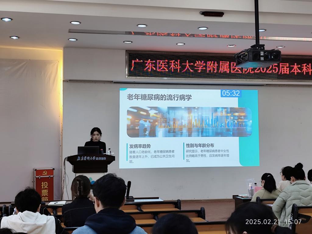 2 月 21 日,广东医科大学附属医院教学部与护理部精心筹备的 2025 届本科护理实习生科研成果竞赛在学术报告厅成功举办。此次竞赛以实习生展示成果为契机,旨在加深他们对护理科研前沿的认知,强化科研思维与实践能力,促进团队间经验交流与智慧碰撞,携手推进护理科研事业发展。