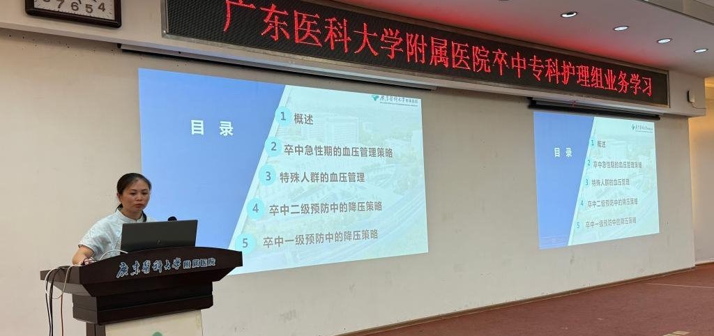 为进一步提升卒中专科护理组对神经重症患者的综合管理能力,规范卒中患者血压管理的临床实践,卒中专科护理组5月20日在学术报告厅开展了神经重症与血压管理专题培训,参与培训人员包括专科组联络员、病区骨干及感兴趣的医务人员。本次培训活动由脑卒中专科护士陈淑芳和脑卒中个案管理师陈彩凤主讲。