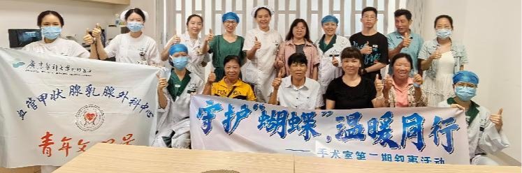 甲状腺手术患者常因疾病本身、手术风险及术后康复等问题产生焦虑、恐惧等心理负担。为帮助患者缓解压力、增强信心,促进身心康复,为此,广东医科大学附属医院手术室护士团队联合血管甲状腺外科精心筹备,于2025年5月27日在血管甲状腺外科会议室举办了一场主题为“守护‘蝴蝶’,温暖同行”的心理赋能活动,通过倾听、分享和互动,让患者感受到医护团队的关怀与支持。为即将接受甲状腺手术的患者及家属带来一场心灵的慰藉之旅。