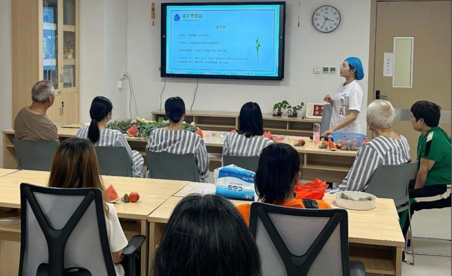 活动中,叙事师资何沅君以引导患者分享经历的形式,通过图文并茂的讲解,带领大家穿越时空:一起回顾端午节的起源(屈原传说、祛病防疫习俗等)及南北方的差异化风俗,如赛龙舟、佩香囊、插艾叶等,现场互动氛围热烈。
