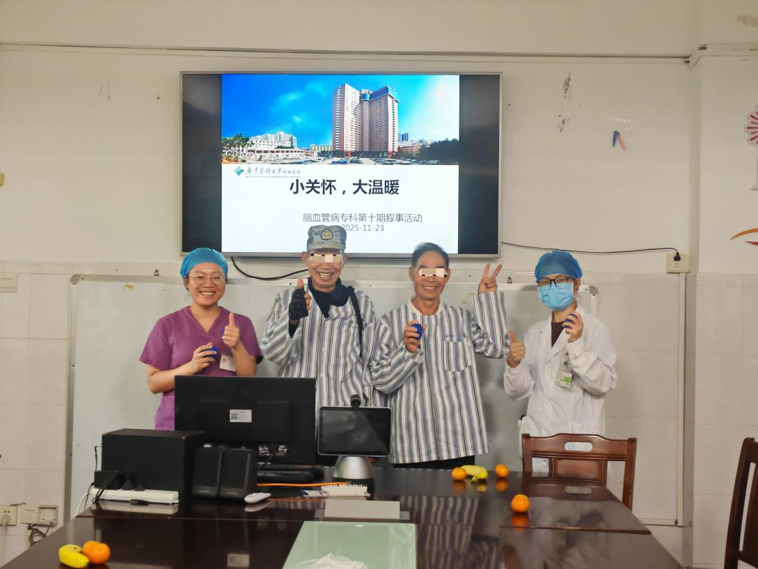 一束鲜花,能点亮整个房间;一句鼓励,能坚定前行步伐。2025年11月23日下午,一场以“小关怀,大温暖”为主题的叙事病友会在脑血管病专科病区成功举办。医护人员与住院患者、家属欢聚一堂,通过一场融合了情感分享、专业指导和暖心礼物赠送的特别活动,共同编织了一段充满希望与力量的康复记忆。
