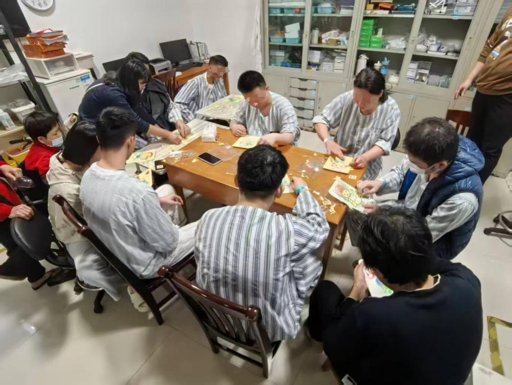 即便图案相同,患者们在色彩选择与洒沙手势中流露的个性,却让每一幅作品都成为独一无二的存在。细微之处,皆是真情。“这幅星空让我想起小时候乡下的夜晚。”活动渐近尾声,完成作品的患者们自然地交谈起来。固定的图案,反而成了大家分享回忆、畅想未来的起点。邹小雪护师在一旁感慨:“起初我们还担心固定的框架会束缚想象,后来才发现,正是这样的‘框架’带来了安全感,让大家能在熟悉的边界里安心表达。”