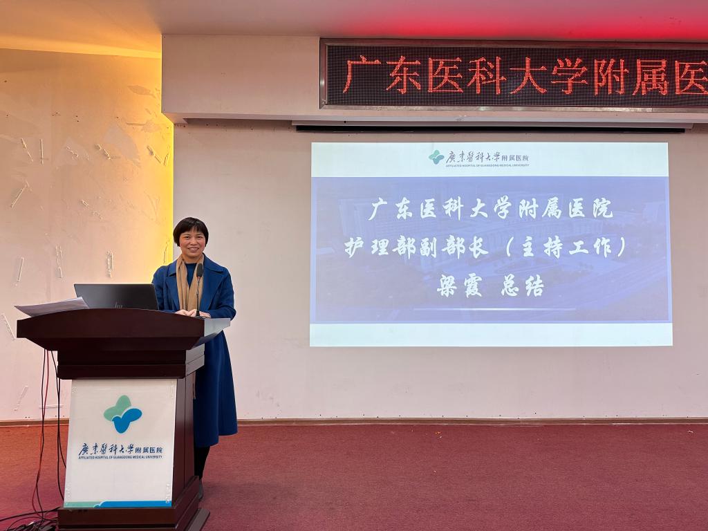 护理部副部长(主持工作)梁霞主任对本次比赛作最后总结,充分肯定本次护理循证项目比赛的意义以及参赛选手精彩表现,并督促选手们要看到别人的亮点,反思自身的不足,不断改进。立足临床实际问题,不断提高发现问题、分析问题和解决问题的能力。希望通过此次比赛,能以赛促学、以点带面,希望护理同胞们能共同学习、进步,不断自我突破。
