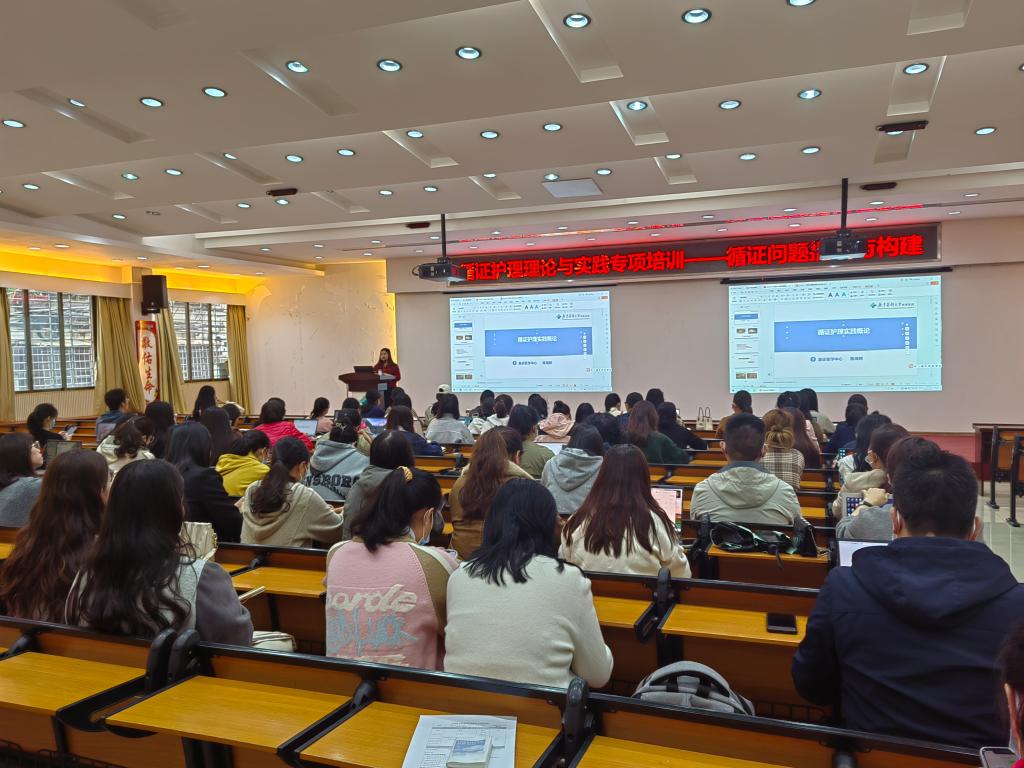 为推进2024年循证护理实践项目有效落地,提升护理团队循证护理意识、学习循证护理实践知识与技能,推动证据向临床的转化,护理科研管理组制定“循证护理理论与实践”系列培训课程,于3月13日在学术报告厅首次举办“循证护理理论与实践专项培训之一——循证问题提出与构建”,由急诊医学中心护士长陈海婷进行授课,循证护理实践项目组成员代表及护理科研兴趣小组成员等100余人参与学习。