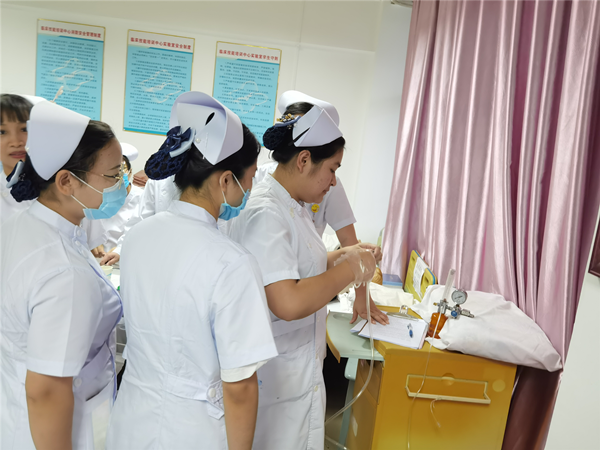 在练习的过程中,钟平老师问了我们组组员临床和学校的区别,她们依次说了在日常学习中,同学之间就互相打针,练习操作,今天的培训中是贴近临床实际操作,老师要通过情景模拟,针对可能会发生的紧急情况做出相应的反应和措施。同时由于2020届的同事就要下到临床工作了,这次培训也给了大家一个检验自己的平台。在此培训练习过程中,这次对大家来说是一次不可多得的锻炼机会。