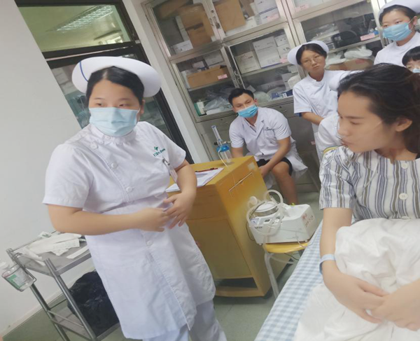 本次操作培训分为七组,分别由七名带教老师带队指导。首先指导老师从环境物品评估、病人评估、病情观察、翻身拍背、指导有效咳嗽、负压吸痰等六项内容向大家展示完整操作,随后学员单独训练,全体人员对其进行点评,并由老师指导规范。